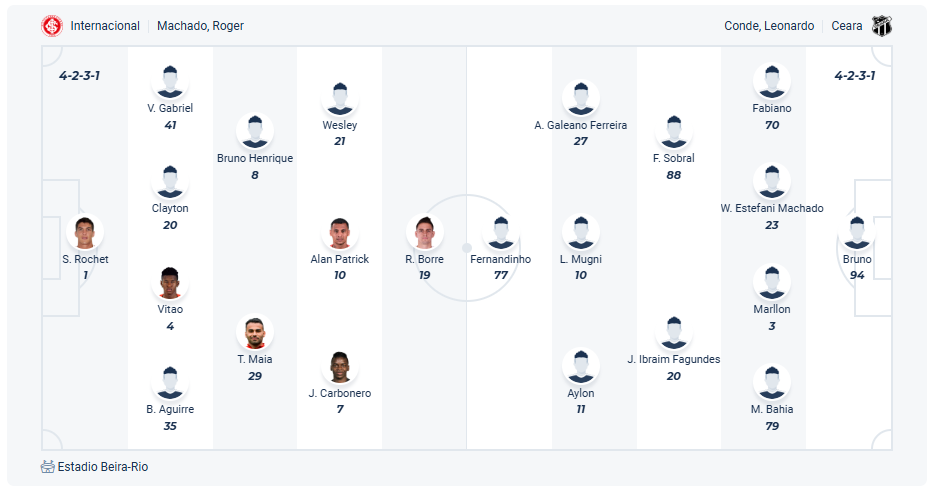 Internacional đang đứng thứ 14 trên bảng xếp hạng, so với vị trí thứ 5 mùa trước thì rõ ràng đội bóng của HLV Roger Machado đã thụt lùi rất nhiều. Việc để thua và hòa liên tiếp là nguyên nhân cho thứ hạng không tốt này và đến vòng đấu trước thì họ mới có được chiến thắng. Các cầu thủ Internacional muốn tiếp tục có chiến thắng để cải thiện thứ hạng của mình nên 3 điểm là điều duy nhất họ hướng đến khi đón tiếp Ceara trên sân nhà ở vòng 14. Trước đối thủ không mạnh và không có phong độ cao thì khả năng Internacional sẽ có được điều mình cần.