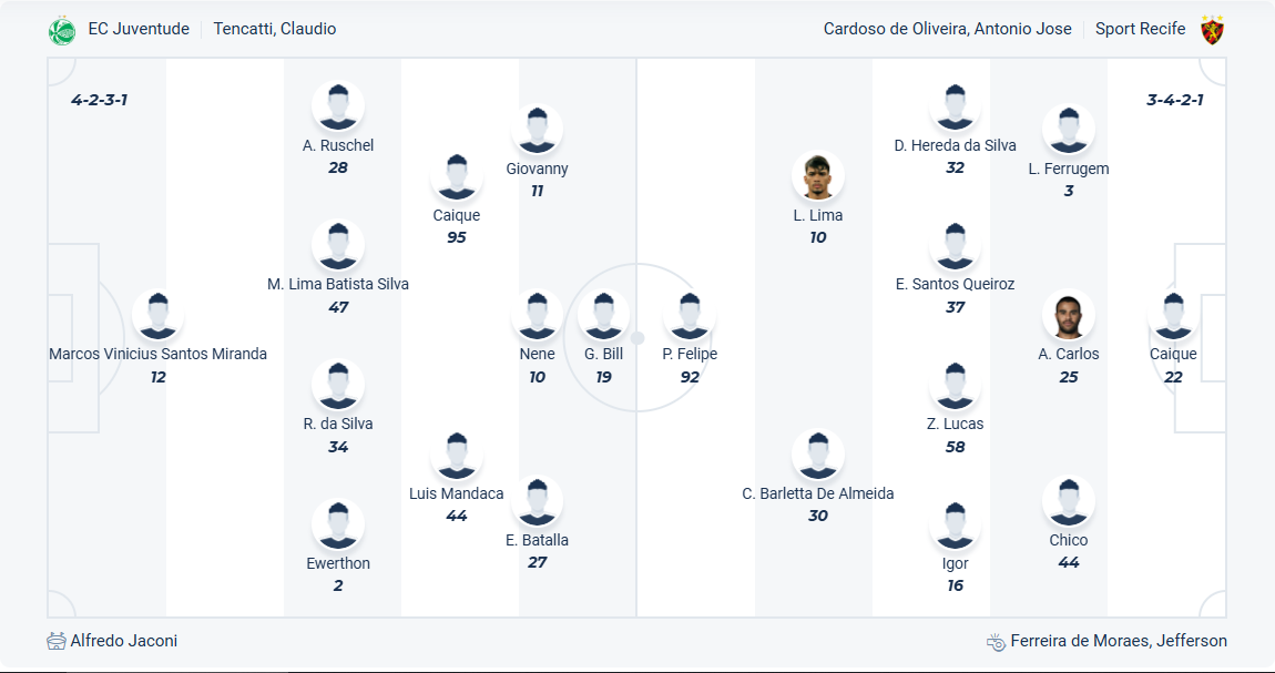 Recife là đội bóng mới thăng hạng mùa giải này, rõ ràng họ không có thực lực tốt bằng các đội khách nên chỉ đặt mục tiêu trụ hạng. Thực tế cho thấy mục tiêu này rất khó khăn với thầy trò HLV Daniel Paulista khi họ sớm bộc lộ là đội yếu nhất giải đấu, các cầu thủ Recife chưa thắng trận nào và mới chỉ có 3 điểm từ 3 trận hòa. Tình thế hết sức nguy cấp và nếu không chơi tốt hơn thì việc xuống hạng với Recife là điều hiển nhiên. Dù vậy với thực lực như vậy thì rất khó cho họ, nhiều khả năng chuyến làm khách trên sân Juventude sẽ khiến họ phải nhận thêm một trận thua nữa.
